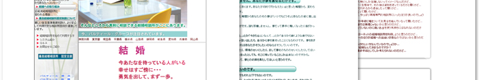 横浜の結婚情報サービス会社のWEBサイトです。情報量が多いサイトなので、随所の細かいデザインにかなり凝り、枠組みや見出し、タイトルなどを装飾しています。写真を多用し、挿絵のようにつかうことで、長めの文章も訪問者に無理なく読み進めてもらうように工夫をしています。